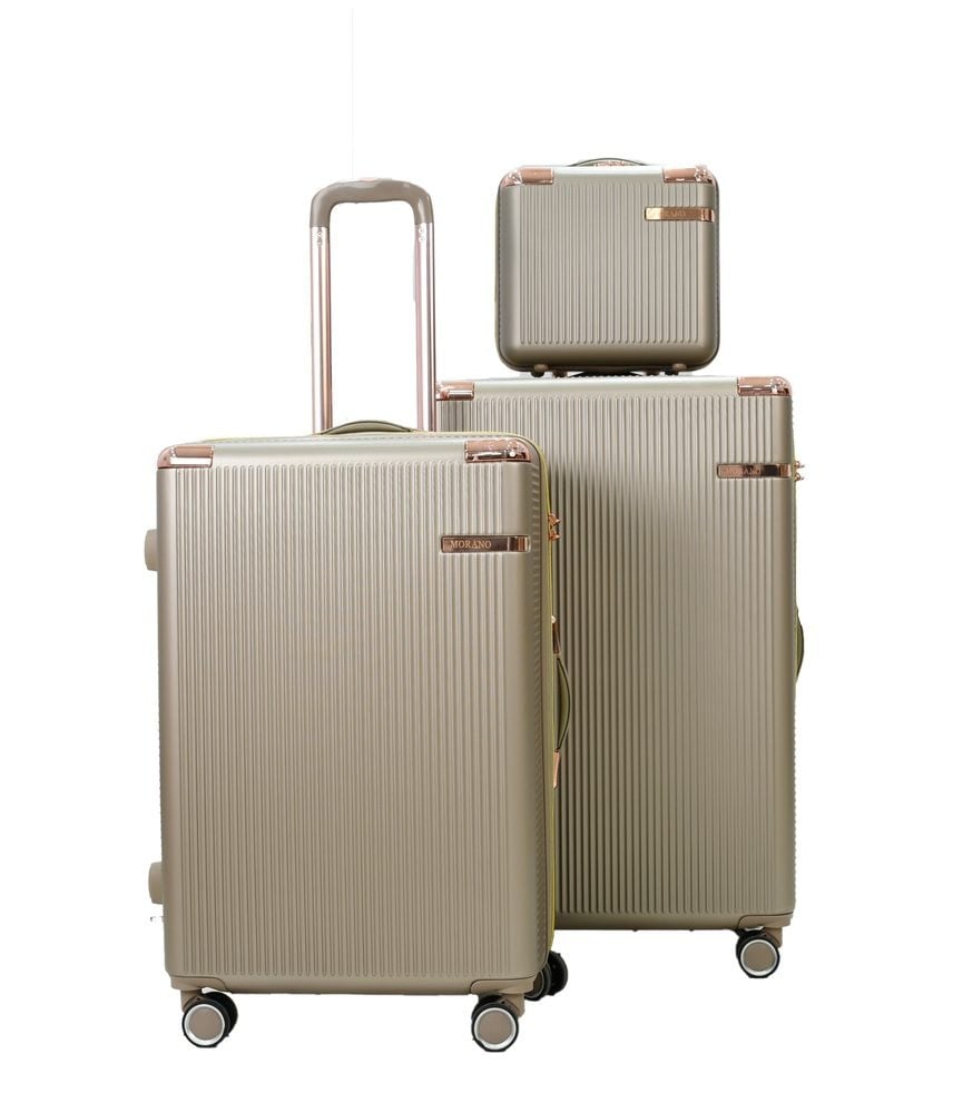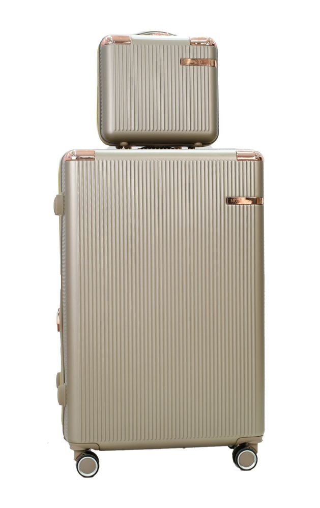 طقم حقائب سفر مخطط بجوانب 4 قطع سحب كبيرة + قطعة يد محمولة لون ذهبي